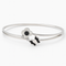 This stunning piece features a sleek, silver-toned cable bangle accented by five brilliant, multifaceted sapphire-blue crystal beads that catch the light with every movement.
