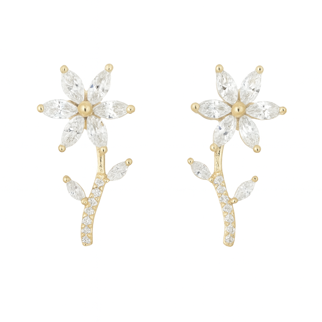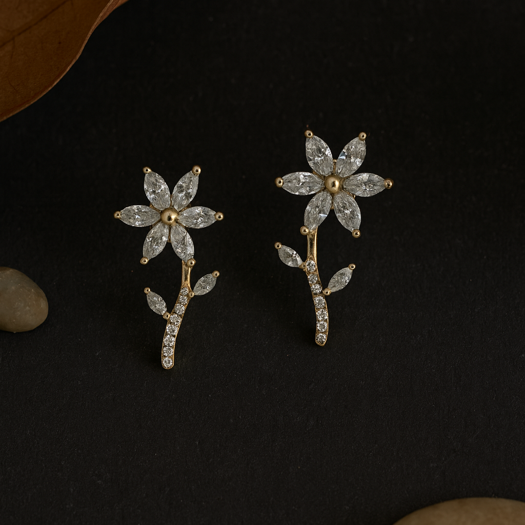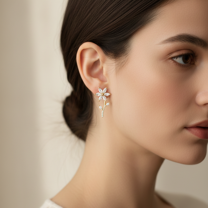 These stunning earrings feature sparkling crystal petals arranged in a graceful floral silhouette. Lightweight, classy, and eye-catching—ideal for special occasions or gifting.