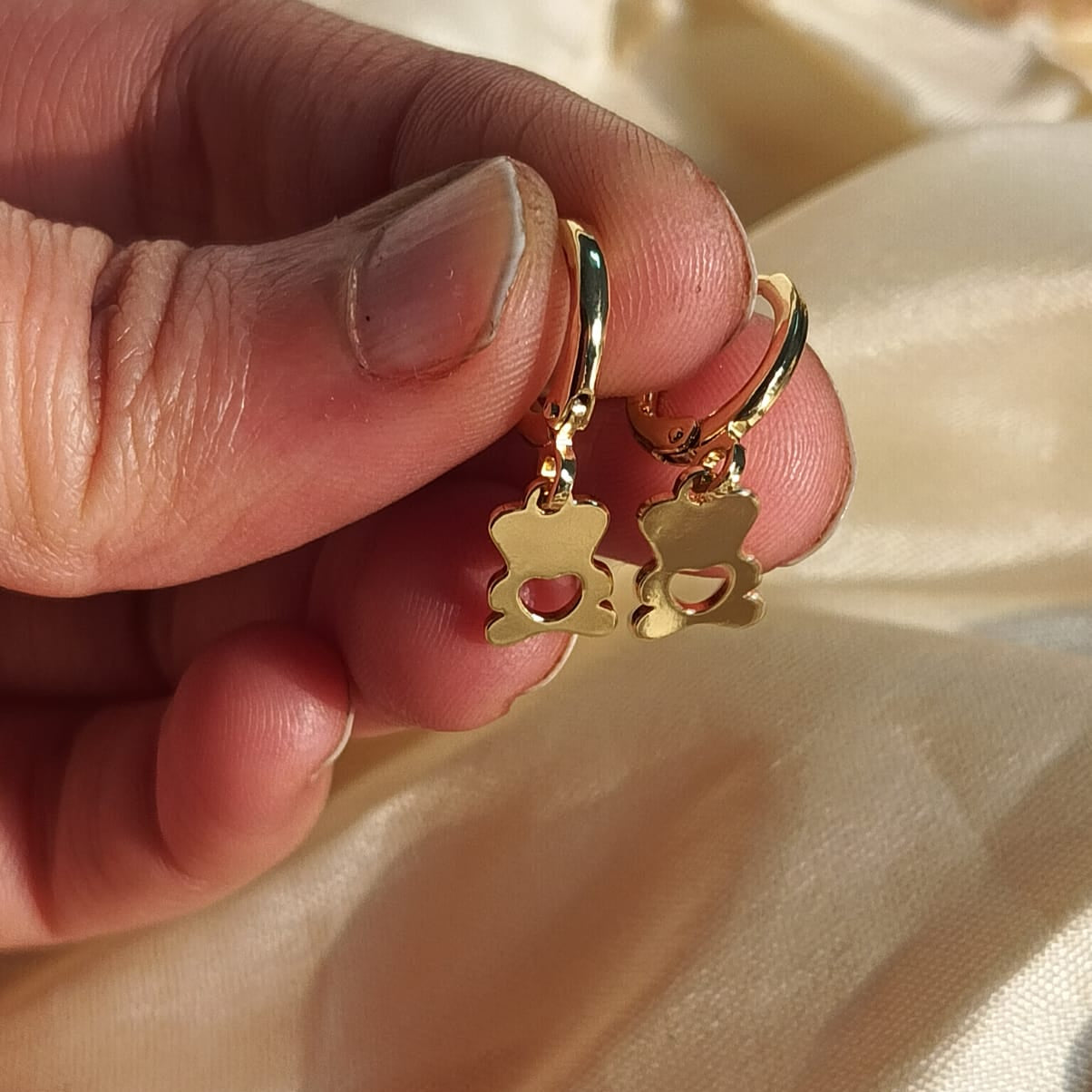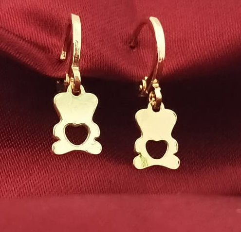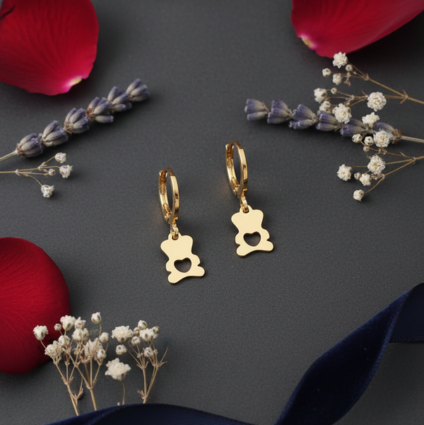 These professional-grade lifestyle earrings feature a polished gold hoop paired with a charming, minimalist teddy bear charm.