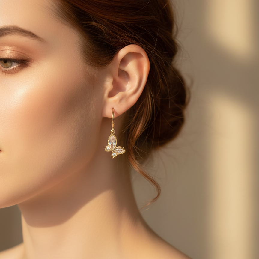 Featuring a delicate 18K gold-plated finish and shimmering marquise-cut crystals, these pieces are designed to catch the light with every movement.