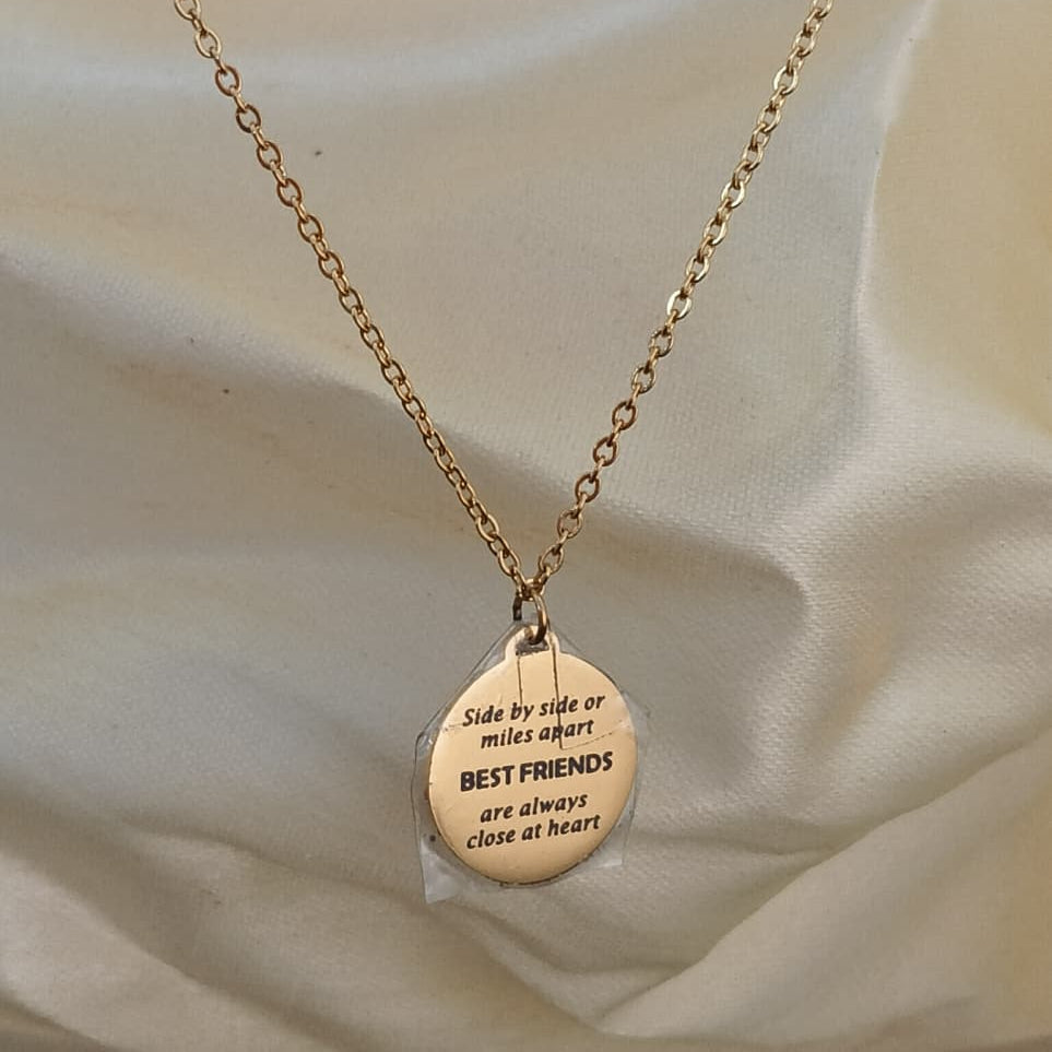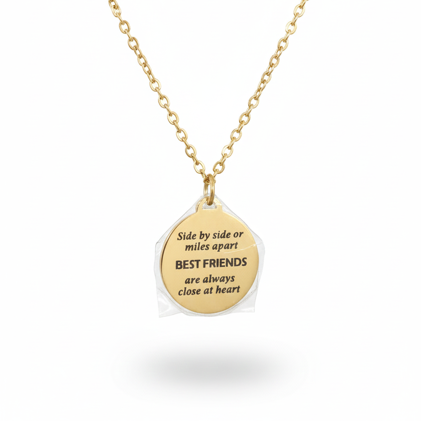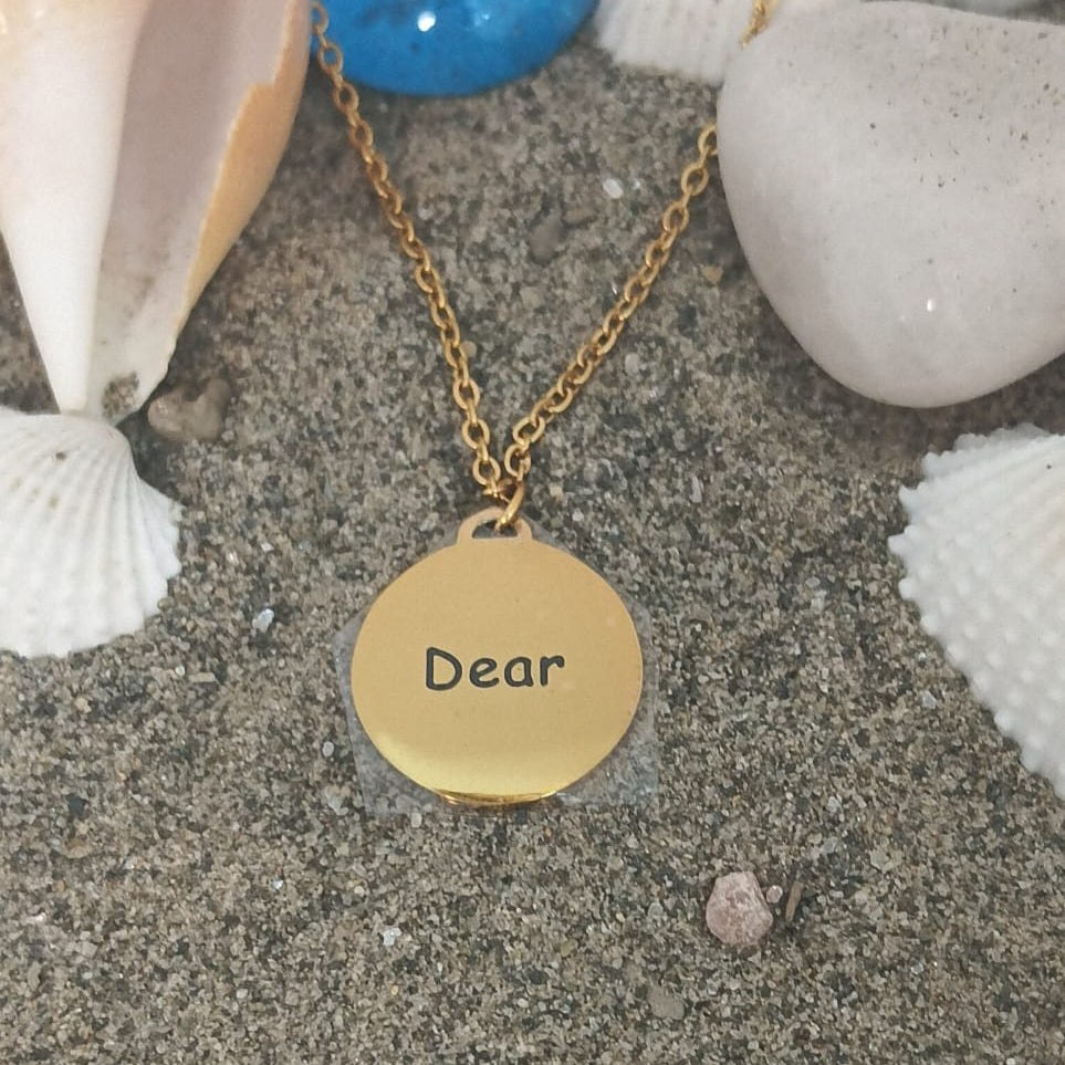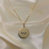 Carry your sentiment in style with this minimalist gold-finished pendant engraved with “Dear.” Crafted with a sleek round silhouette and polished shine, it’s a timeless piece made for everyday elegance. Anti-tarnish, waterproof, and gentle on skin—perfect for gifting or cherishing.