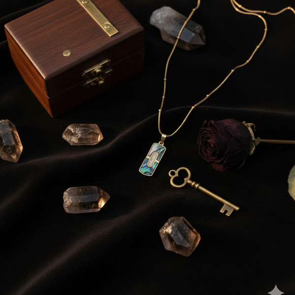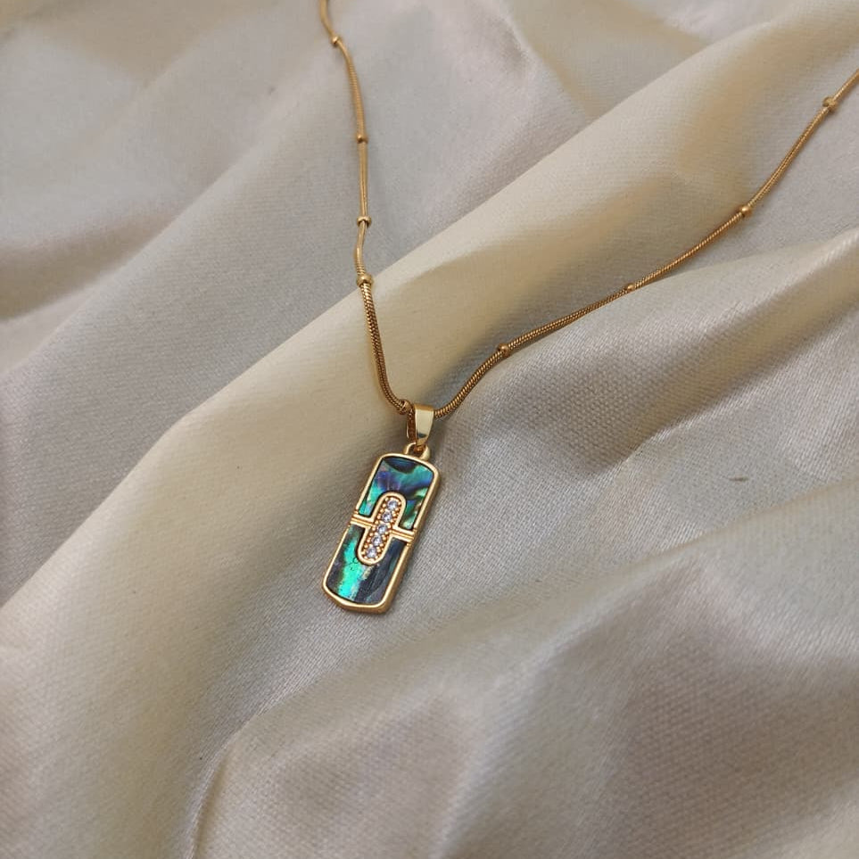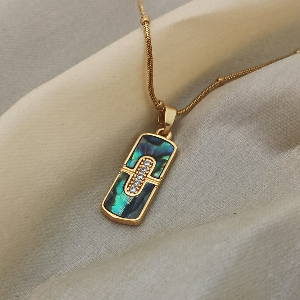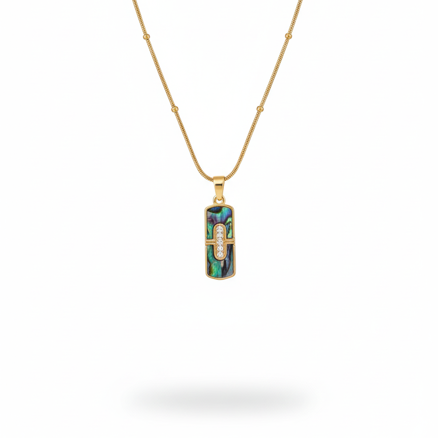 This elegant pendant features a mesmerizing abalone-inspired inlay framed in 18K gold-plated stainless steel, creating a luxurious play of color and shine. The center detailing adds a refined sparkle, making it a perfect piece for everyday elegance or elevated styling. Anti-tarnish, waterproof and skin-friendly — crafted to be as durable as it is beautiful.