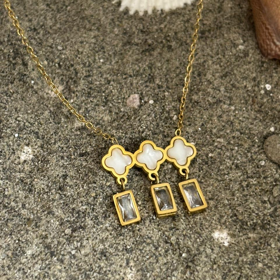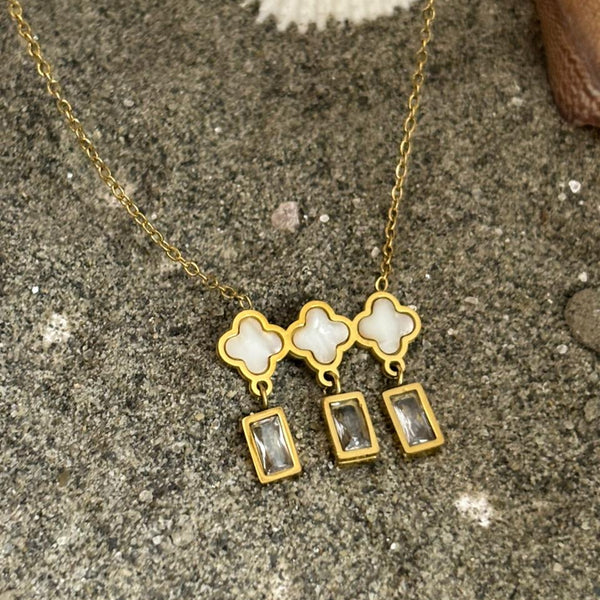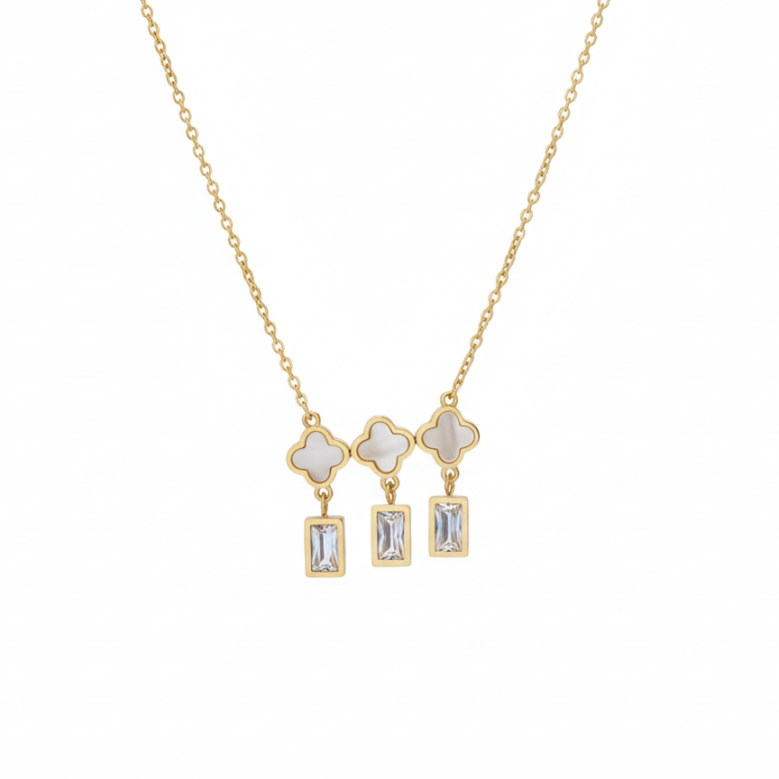 The Elegance Trio: Clover & Crystal Drop Necklace
