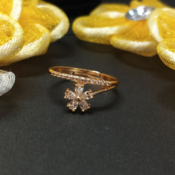Gold Plated Adjustable Flower Ring with Cubic Zirconia