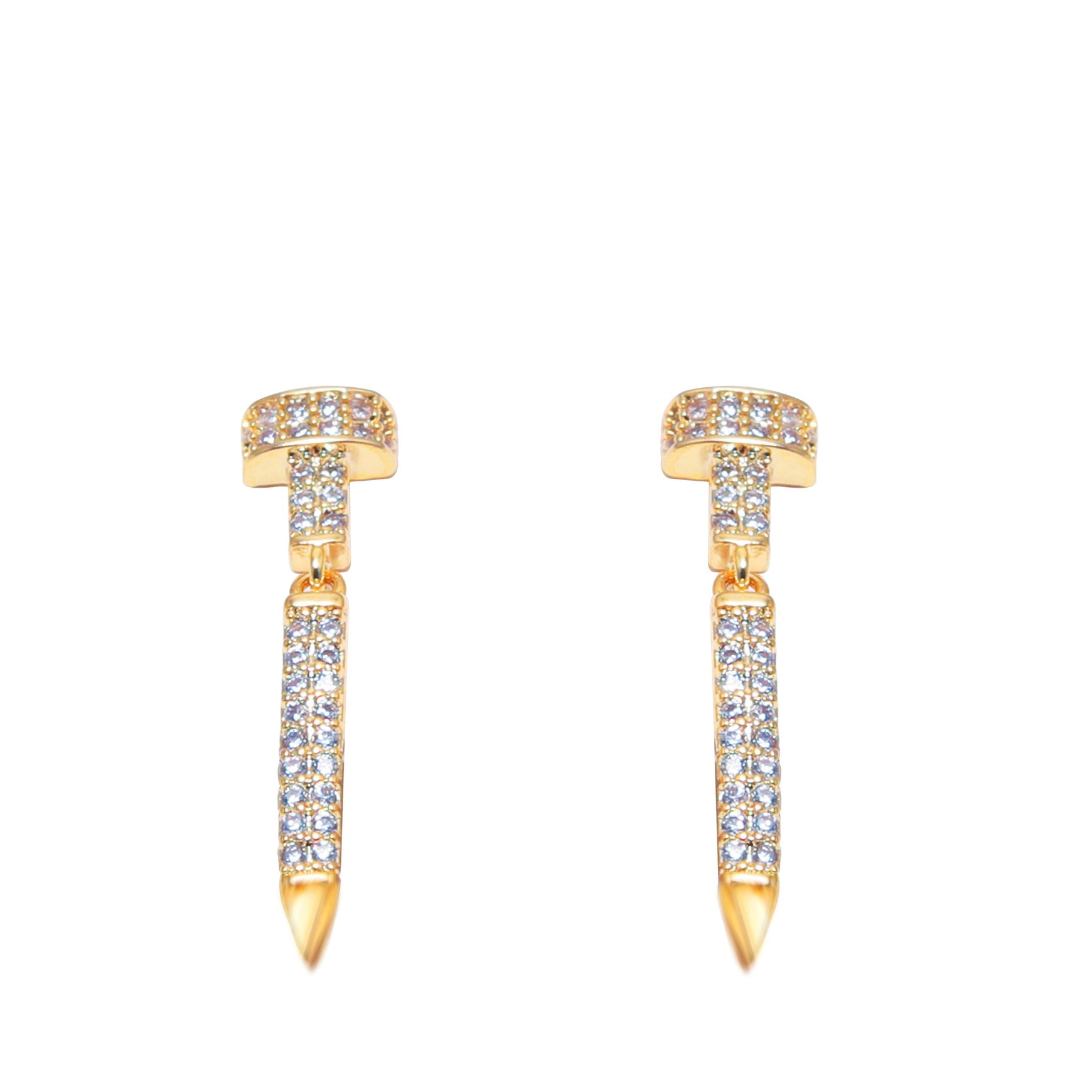 Design: Nail-inspired gold drop earrings.