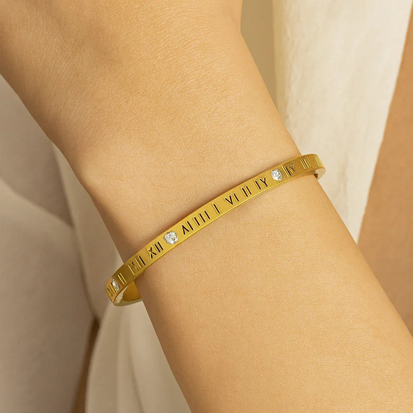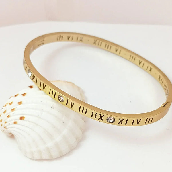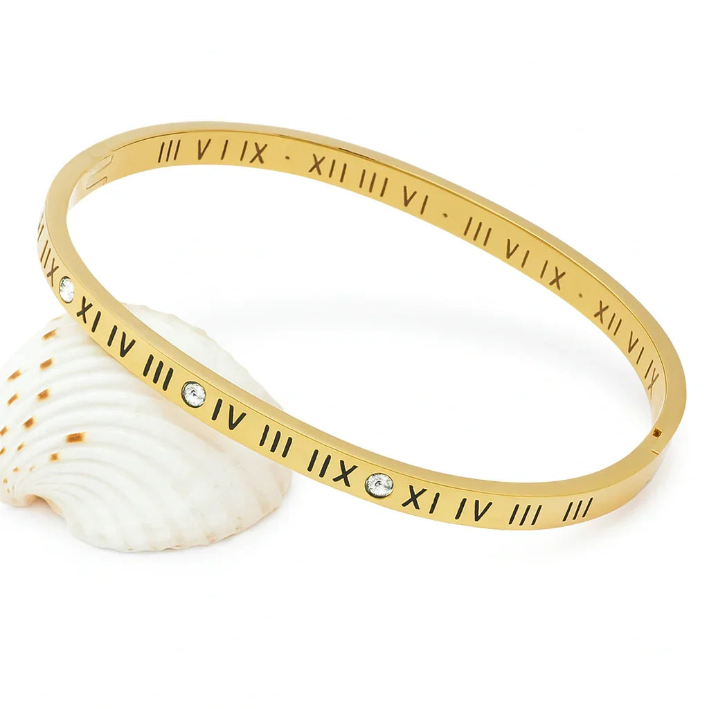 ✨ 18K Gold Plated Roman Numeral Bangle with Crystals ✨