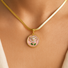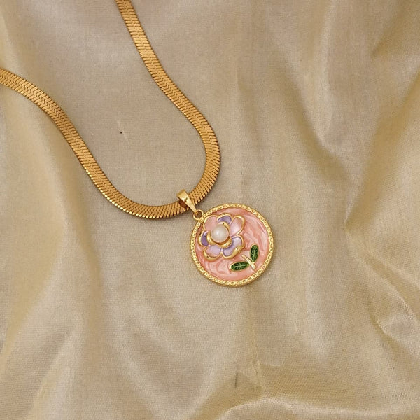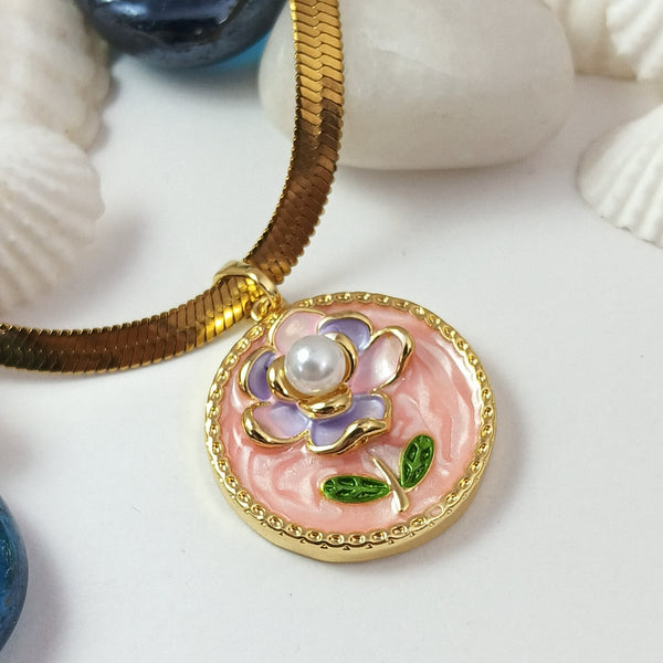 18k Gold plated Stainless steel Elegant Floral Enamel Pendant