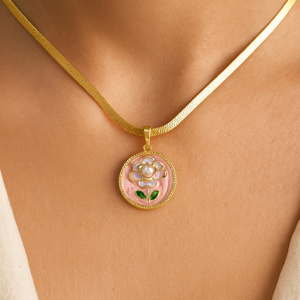 Style Tip: Pair this pendant with a sleek gold chain or a pastel outfit to highlight its feminine elegance. Ideal for brunches, festive gatherings, or gifting someone special who loves floral accents.