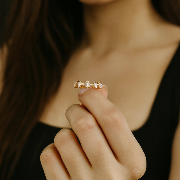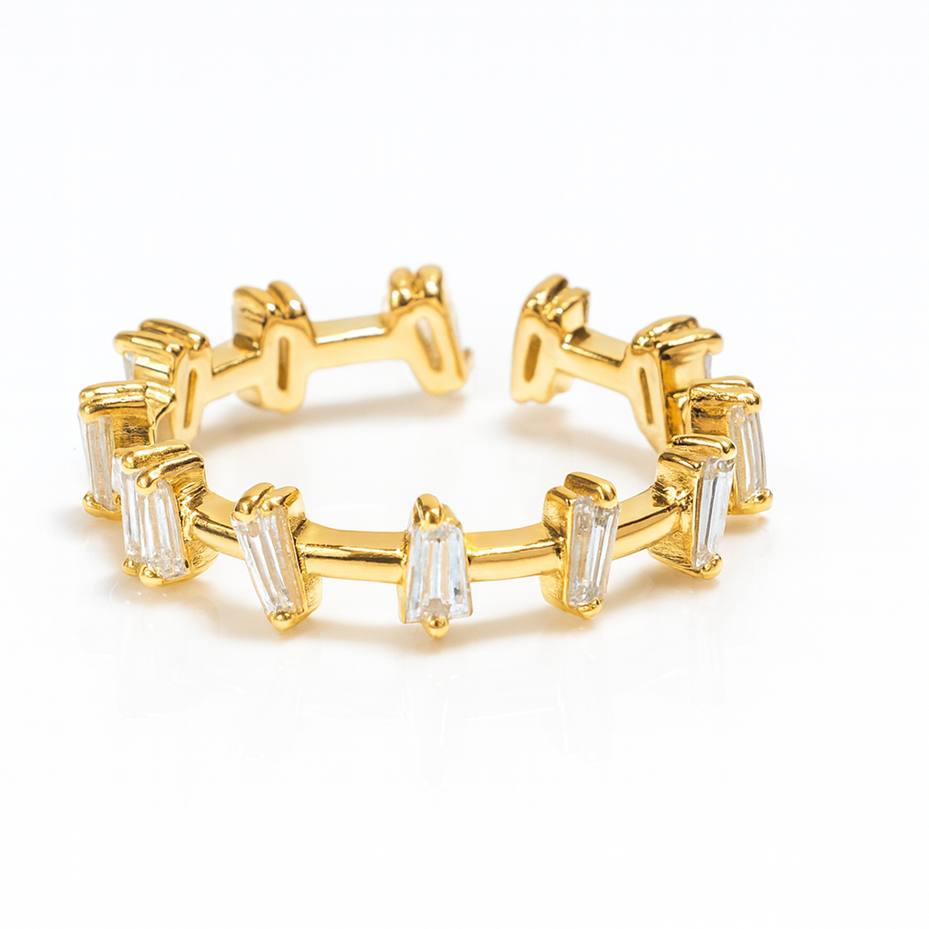 Design: Adjustable Round ring with Baguette-Cut Cubic Zirconia