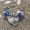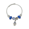 Charms: Central Evil Eye charm and a dangling crystal-embellished Hamsa Hand.