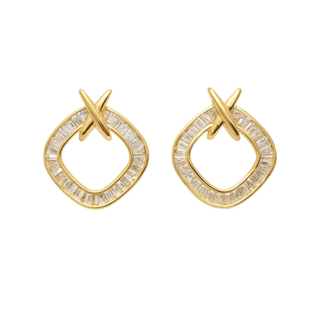 Gold-Plated American Diamond Earrings – 925 Silver Post