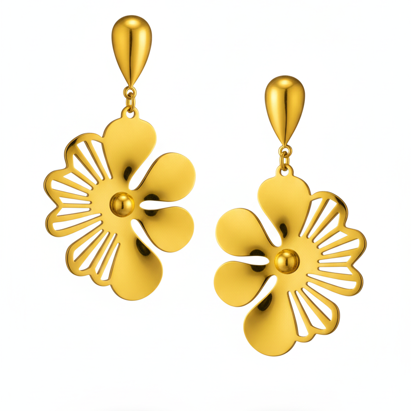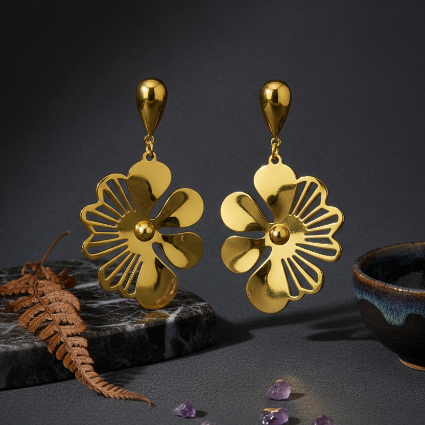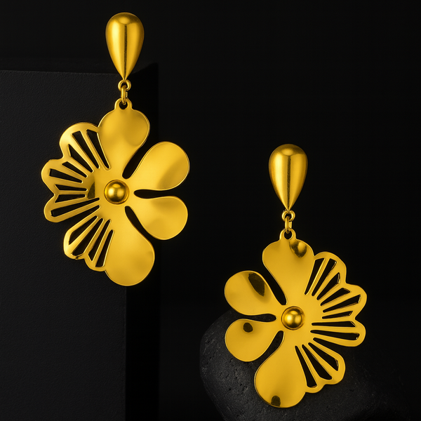 Featuring a bold, oversized flower silhouette with a brilliant, polished finish, they are the perfect accessory to elevate any look from daytime chic to evening glamour. Let this luxurious piece speak for itself.