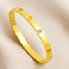 Shine with timeless elegance in this exquisite crystal-studded bracelet. Crafted from premium stainless steel and finished with a radiant 18K gold plating, this bracelet is designed to sparkle from every angle. The dazzling crystals add a touch of luxury, while its free-size fit ensures comfort and versatility—perfect for both everyday sophistication and glamorous occasions.