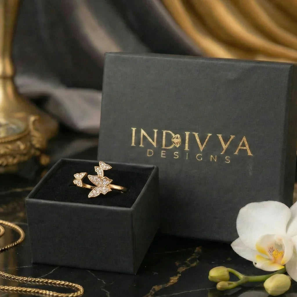Bring a touch of whimsy and sparkle to your look with this enchanting butterfly ring. Adorned with shimmering American diamonds, the delicate butterfly motif symbolizes grace and transformation, while the radiant gold plating adds a luxurious finish. With its adjustable fit, this ring is as versatile as it is stylish—perfect for daily wear or special occasions.