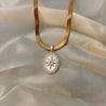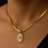 "Elegant 18K Gold-Plated stainless-steel Snake Chain with Oval Starburst Pendant."