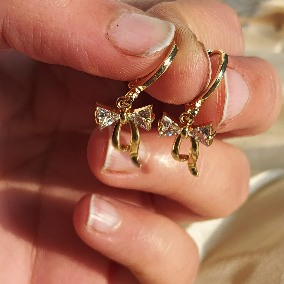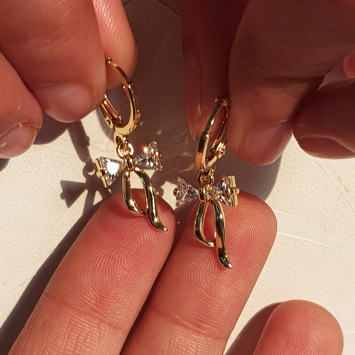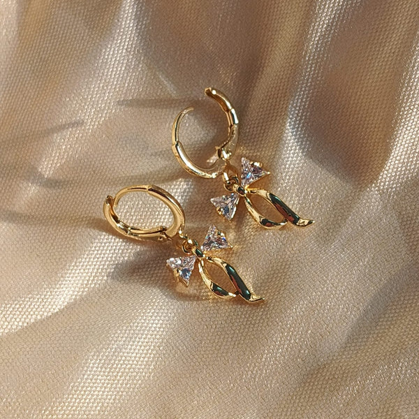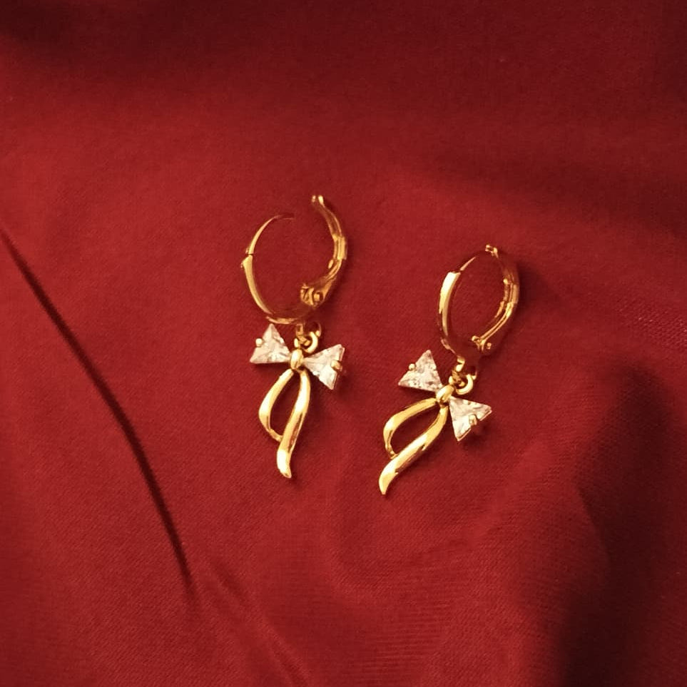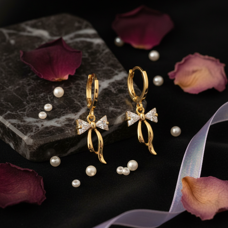 Featuring a delicate gold-finished ribbon accented with shimmering pavé-set crystals, these drops offer a perfect blend of playful charm and sophisticated elegance.