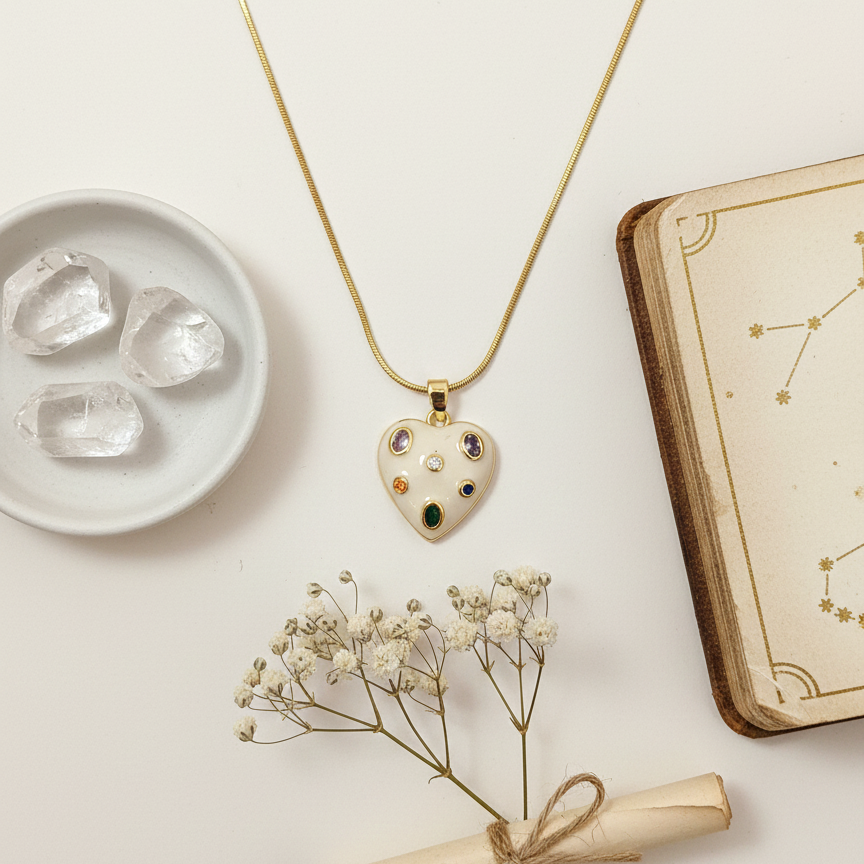 The Artist's Heart: Enamel & Multi-Stone Pendant