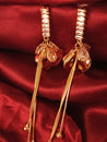 These elegant gold-toned earrings feature a stunning teardrop CZ centerpiece embraced by sculpted petal-like motifs.