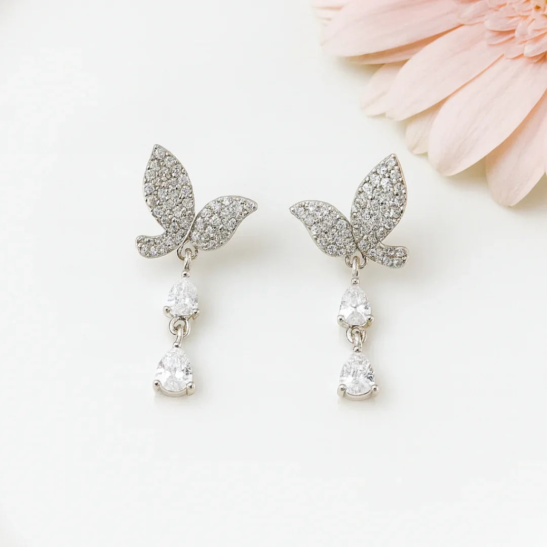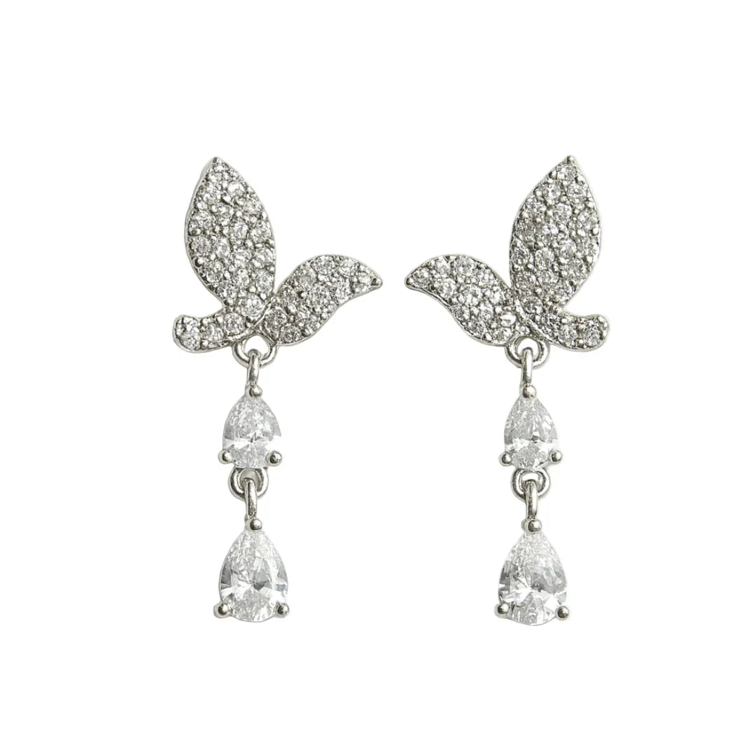 Add a graceful touch to your look with these elegant bird drop earrings, crafted in stainless steel with a 925 sterling silver post for comfort and durability. Adorned with sparkling American diamonds, these earrings beautifully combine charm, shine, and sophistication.