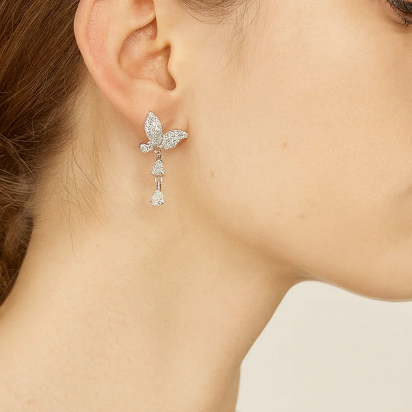 Sterling Silver Bird Drop Earrings with American Diamonds